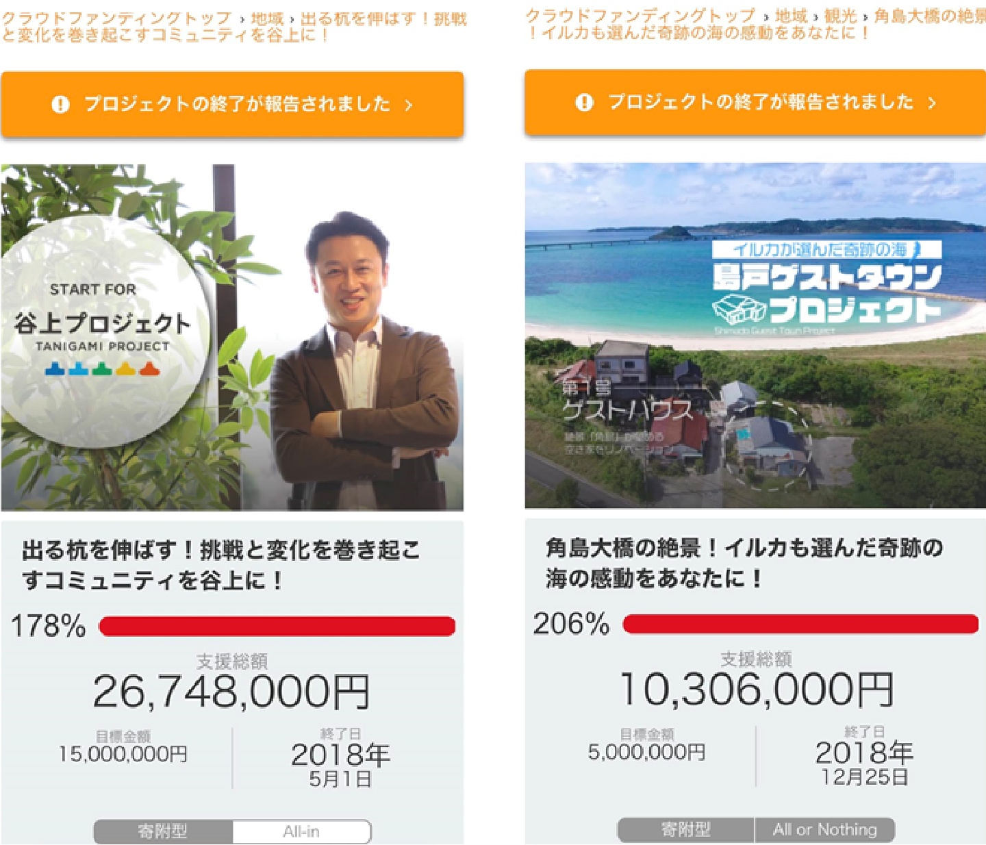 これら2つの案件は、どちらも私が携わった『ふるさと納税型クラウドファンディング 』のスキームを用いたプロジェクトです。