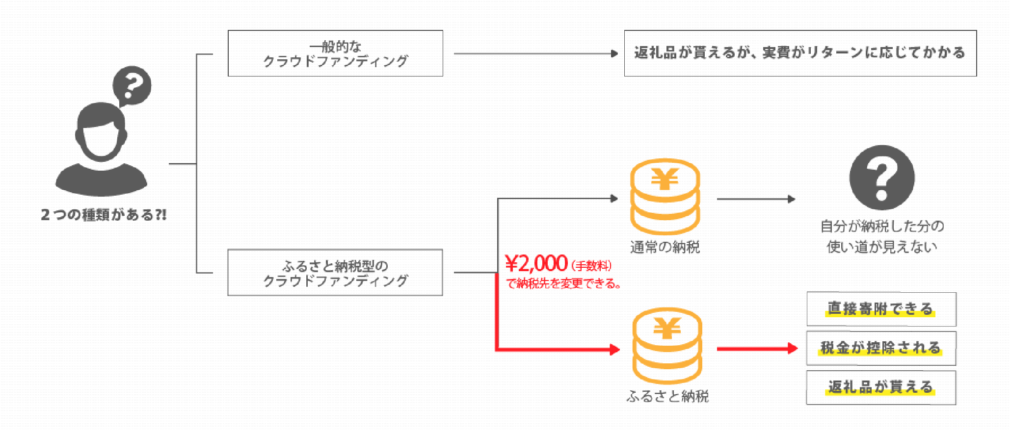 ふるさと納税税制の仕組みを使う事で、たった実費2,000円の出費でであなたのプロジェクトを応援でき、なおかつそれ以上のリターンを享受する事ができるからです。
