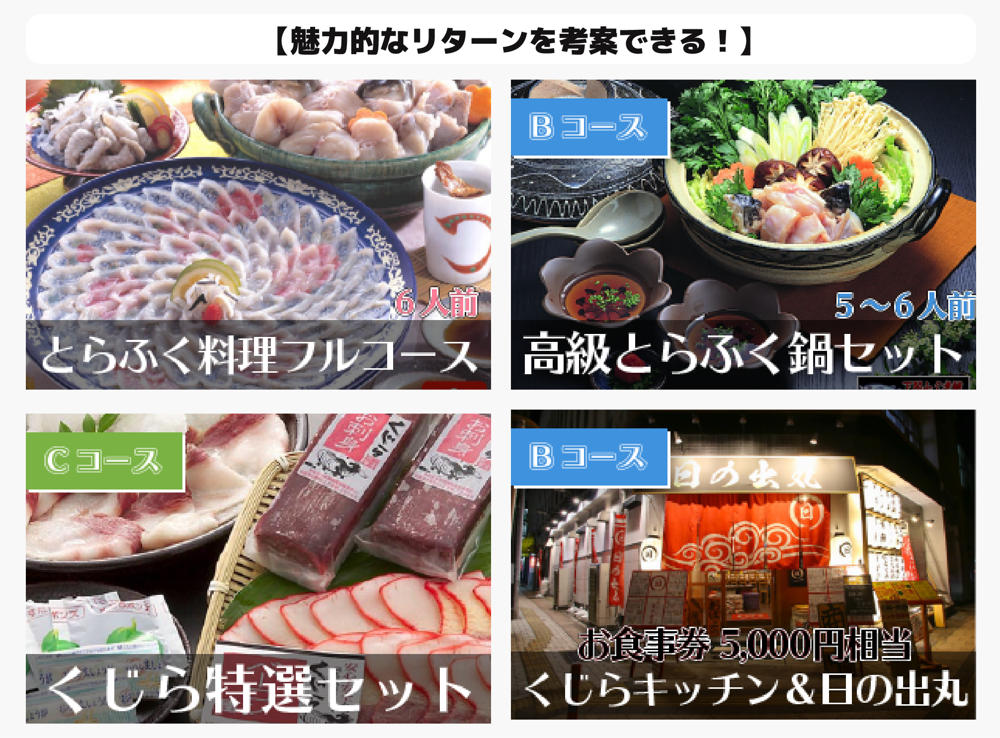 リターンの内容によっては通常数万円の価値のあるものが、実費2,000円で手に入れる事ができる為、支援者にとってもお得感満載です。また自分のお金が地域貢献の一部に使われるという事で
