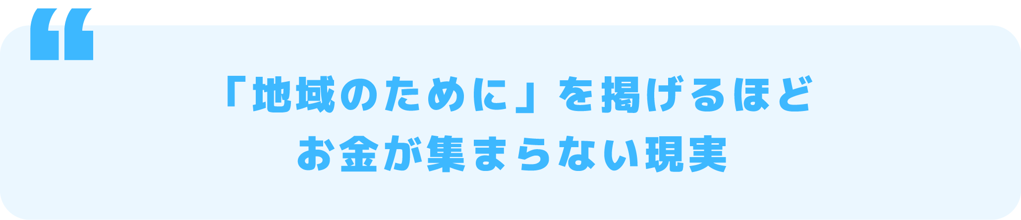 せっかく素晴らしい活動を実施していて、地域からの信頼はあるにも関わらず、それがゆえになかなかビジネスとしてはお金に繋がらない。
