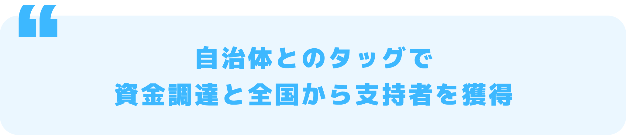 その仲間を集め、行動を起こす狼煙となるツールがこの『ふるさと納税型クラウドファンディング 』なのです。