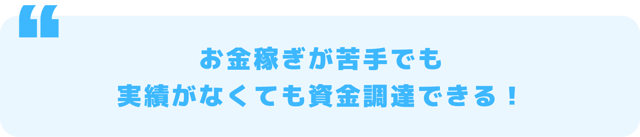 このスキームの優れている点を一言で言うならば、お金儲けが苦手で、実績や担保がない人でも資金を調達できることです。