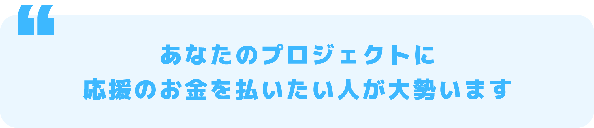 あなたのプロジェクトへの思いや、あなたに対する信頼がお金に変わるのです。