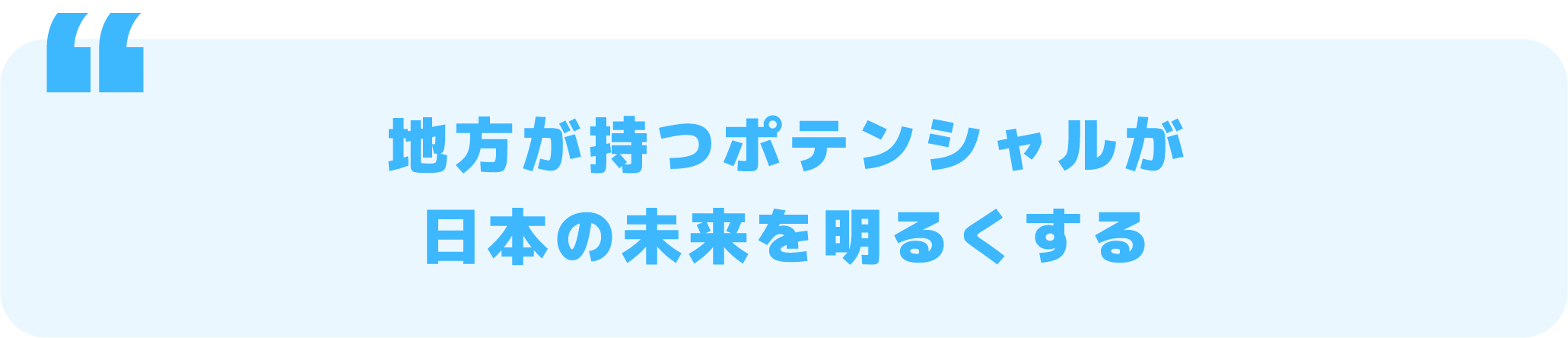 これから地方を盛り上げていくときに必ず必要となる、行動を起こすきっかけの背中の一押しを直接したいと思っています。