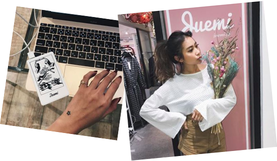 1994年生まれ、東京都出身。高校在学中に109内のショップでビジュアルスタッフとして働き始める。その後、juemi立ち上げのきっかけとなる中国で買い付けたウエアや小物の販売を開始し、好評を得る。